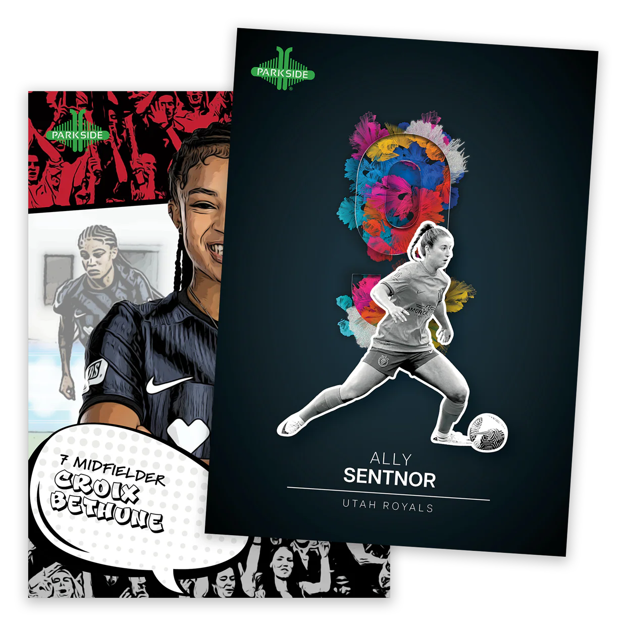 Base set and stars of the NWSL trading cards, varied parallels, and multiple special inserts, such as the Ultimate Rookie Team, Numerics, Flashpoint, Majesty, and Alex Morgan last game ball relics.